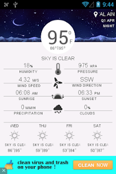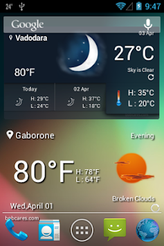 The widgets and app interface have detailed weather information includes sunrise and sunset time, four days weather forecast, and different images for different weather conditions. Additionally it's enhanced GPS module detects the current location while creating the widget or while loading splash screen before opening the app. This improves it's performance and it's improved search option enables you to search all the cities and countries easily.