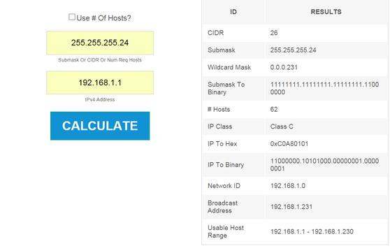 given a IPv4 and Submask Or CIDR Or Num Req Hosts, calculate this values
