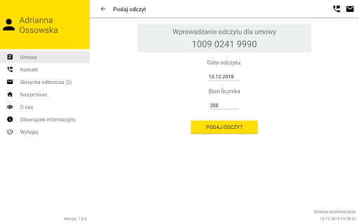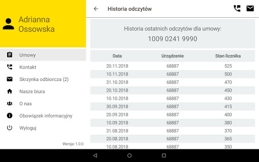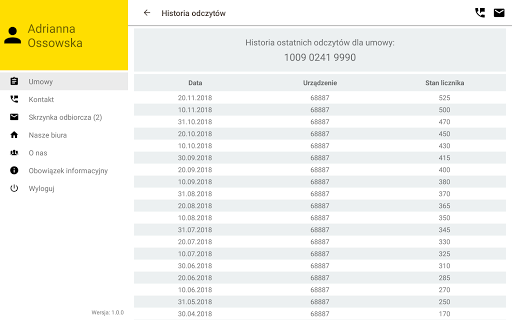 - dostęp do informacji o własnym zużyciu gazu poprzez wgląd w historię odczytów gazomierzy