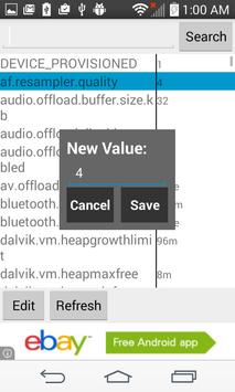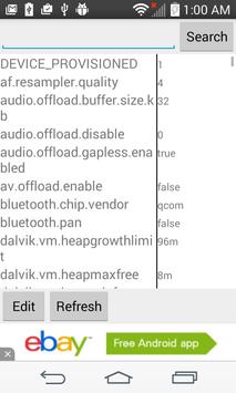 Edits using internal commands setprop and getprop. Basically is a simple interface to the complex and confusing console interface of system properties.