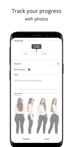 Progress photos - record your body transformation and store on a daily basis up to four photos for easier comparison.