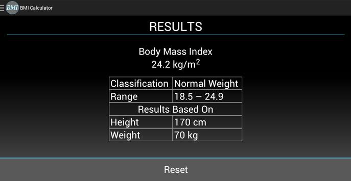 The Body Mass Index (BMI) Calculator provides a simple, easy-to-use tool which allows the rapid calculation of a BMI. Thanks to its sleek and intuitive design, a BMI can easily be calculated in a matter of seconds. This app is a must have for anyone who regularly performs BMI calculations!