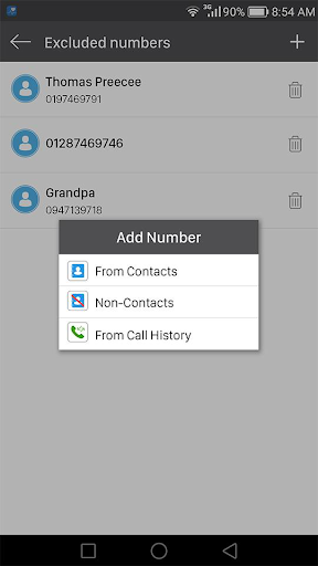 - Ignore recording for specific contact or phone number