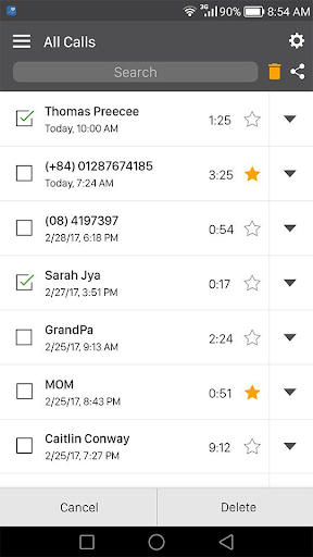 You can record any incoming calls and outgoing call with high quality. The list of recorded files will be stored and streamlined for you. You can manage your recording files, share, play, delete, rename call and back up call recordings. Never worry about losing important call recordings.