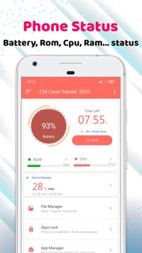 CM Clean Master 2020 is a professional cleaning & boosting program for Android, which has functions of Junk file Cleaner, memory booster, App Lock, CPU cooling, app manager, notification cleaner, Battery saving