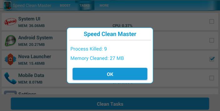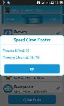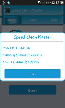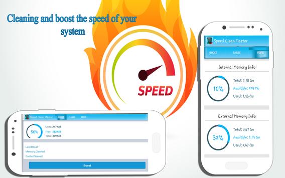 Speed RAM Clean Master goes through your phone and cleans the memory cache of your system, which increases the performance of your phone or tablet, and improving your battery life, boost and Internet speed test. It's completely free!