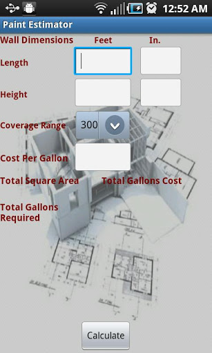 Construction Calculator to aplikacja zbudowana do szybkich i dokładnych szacunków na obliczeniach płytek, płyty betonowe, ściany, mundury i wyświetlanie kosztów i worków cementu (# 94 funtów torby). Aplikacja powinna nagrywać ostatnie numery wejściowe po naciśnięciu "Dalej" lub "Enter" na klawiaturze Android, wykorzystuje również liczby dziesiętne dla tych płyt 3,5 ".