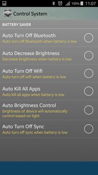 Try our Battery Saver option, it helps you to save some energy consuming options in your device and get more out of your battery. It kills apps running in background that you don't use and gives you the option to turn off options when your battery is running low.