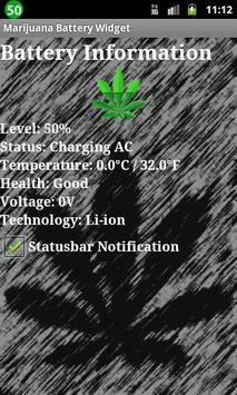 Ten wskaźnik poziomu baterii pokazuje poziom baterii twojego telefonu poprzez liść marihuany, który jest bardziej wypelniony gdy bateria jest naladowana, a gdy bateria sie rozładowuje listek jest coraz mniej wypelniony.