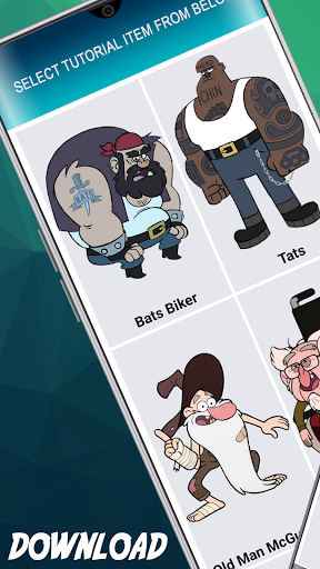 "Jak rysować grawitacyjne Falls Heroes krok po kroku" Aplikacja jest wyjątkowa aplikacja, która uczy, jak narysować Heroes GF na kartce papieru. Wdrożyliśmy lekcje na kawałku papieru kwadratu, aby ułatwić rysowanie. W końcu mamy wiele rzeczy do rysowania! Ponad 70 lekcji, jak narysować grawitacyjne falls heroes, takich jak Mabel, Witsper, Wendy, Stan, Waddles, Gideon, Etс.