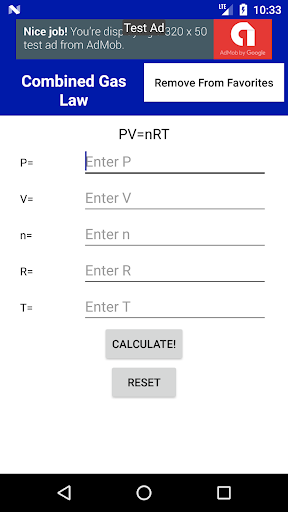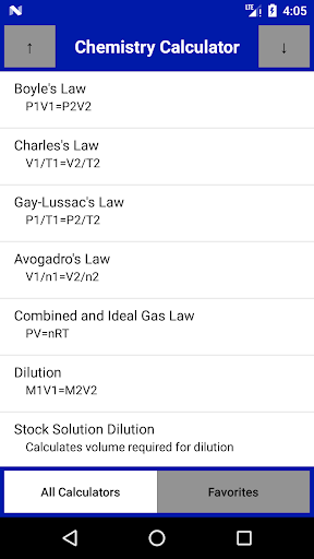 So far it has each of the common gas laws and some helpful dilution calculators.