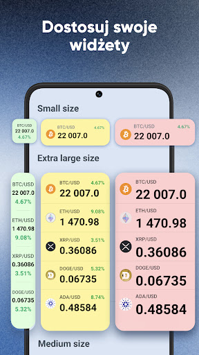 Pobierz Bitcoin & Crypto Price Widget na urządzeniu z systemem Android i bądź na bieżąco z wszelkimi zmianami na rynku kryptowalut.