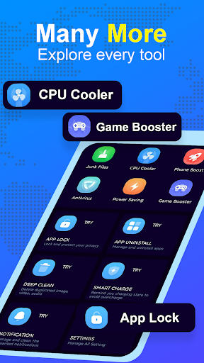 This phone cleaner is an all-in-one tool box cleaner. It contains: Phone Cleaner, Cache Cleaner, Speed Booster, Junk Cleaner, CPU Cooler, Batter Saver, Junk Notification Cleaner, RAM Cleaner, Space Cleaner, App Cleaner, Residual File Cleaner, app lock, antivirus, game booster.
