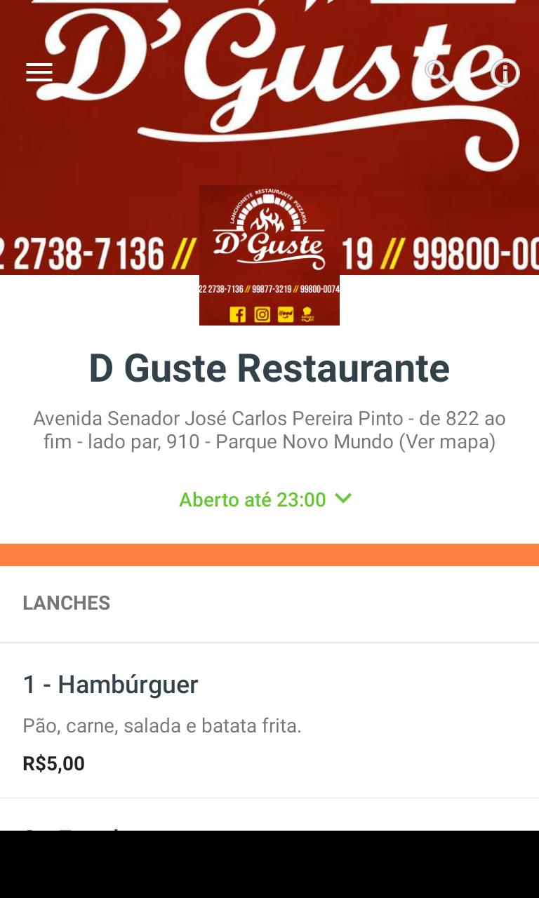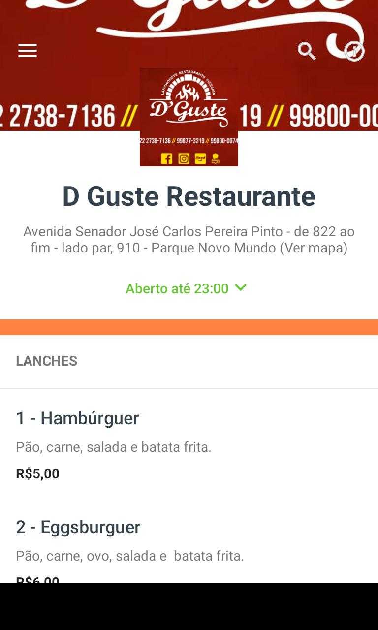 Peça Delivery para D Guste Restaurante com poucos toques na tela do seu Android