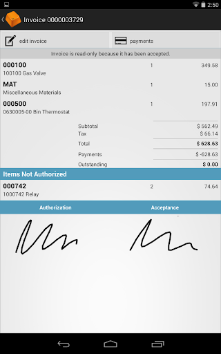 • Present a complete quote to your customer with the ability accept or reject items with the final price adjusting accordingly. Rejected items are saved in the customer account, allowing you to review these items on future visits.