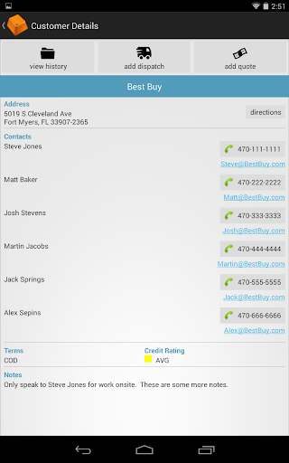• Review the last 10 dispatches assigned to a particular device along with dispatch information and mobile invoice created.