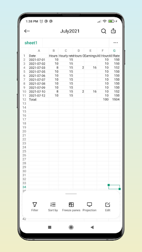 - Wprowadź godziny pracy jednym dotknięciem komórki daty.