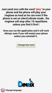 Send yourself SMS with the word "play" or other key word you want and the phone will ring as loud as he can even if on silentvibrate mode .