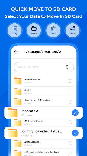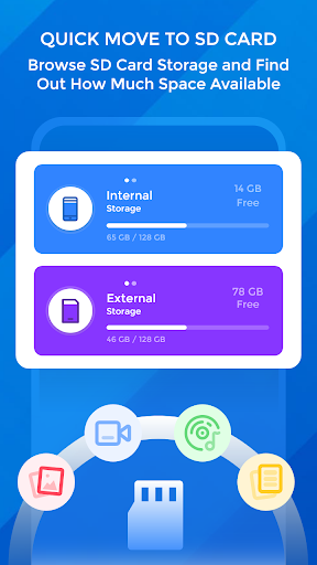 , która pozwala przenieść pliki i aplikacje do karty SD. Przenieś zdjęcia, filmy, muzyki, pliki i wszystkie inne pliki do pobrania z pamięci telefonu do karty SD jednym kliknięciem. Nie musisz już martwić się o niską pamięć wewnętrzną.