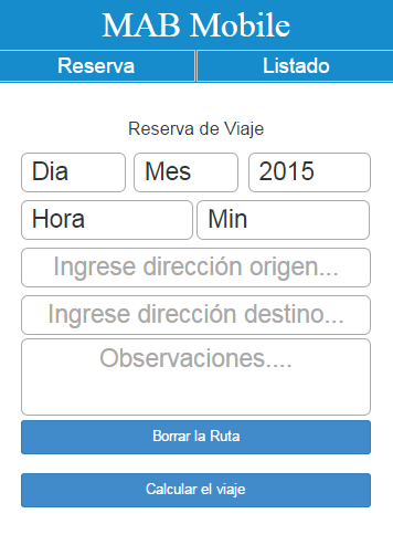 MAB Mobile permite solicitar un remise de su empresa de manera remota sin necesidad de comunicarse telefónicamente ni vía mail, informando a Ud. el auto asignado para su viaje, además de registrar su reserva, los kms aproximados a recorrer y el valor aproximado del servicio.