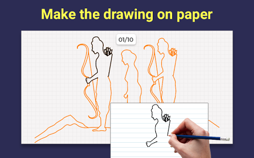 In the on-paper option, you will see the drawing steps in the app, and you have to make the drawing on a paper.