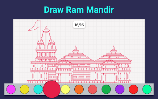 Make Drawing of Lord Ram, Laxman, Sita, Lord Hunmanji and Ram Mandir using this Drawing Lord Ram app.