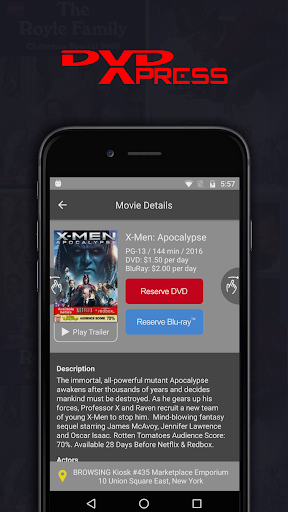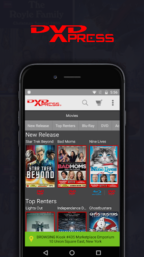 Enjoy our Android mobile app for the added convenience of being able to locate the DVDXpress kiosks nearest you, reserve movies in advance, and see your rental transaction history.