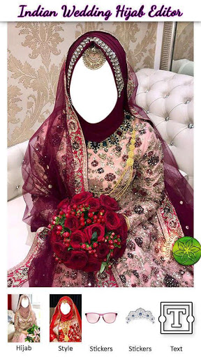 Indian wedding hijab Editor provides a collection of hijab frames in Indian style. Indian hijab weddings have recently been in great demand by brides who love Indian customs. When you get married, do you want to look glamorous like Indian customs? Well, this application is perfect for those of you who want to try wearing a charming Indian wedding dress and look glamorous like the beauty queen. There are many collections of Indian wedding hijabs in this application that can be used as inspiration or just examples to be used for weddings. With many variations such as nose piercing, henna and also jewelry such as necklaces, will add to the beauty and glamor of a woman.