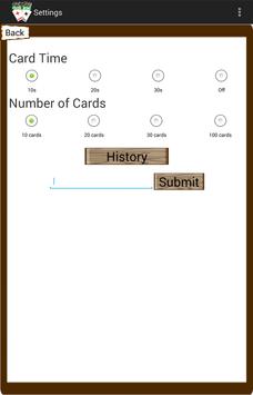 Customization settings let you control the level of difficulty and amount of problems. Settings of the app can be customized to allow for long or shortened time per math problem, amount of cards or continuous play (off feature).