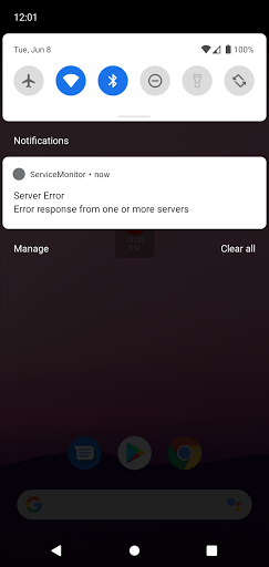 Aplikacja nadal sprawdza serwer, jeśli działa w tle lub po ponownym uruchomieniu, dlatego otrzymasz powiadomienia o błędach automatycznie, nawet jeśli aplikacja nie działa.