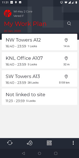 Use the application to view your daily work plan, navigate to sites, retrieve keys, unlock, relock and confirm locking, geofencing, lock maintenance and alerts.