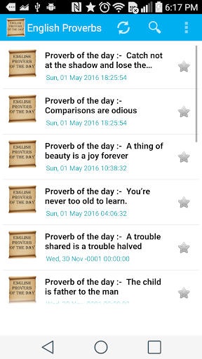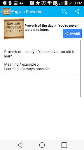 Wspólne powiedzenia wydają się być korzeniem trawy kultury angielskiej i amerykańskiej.USA jest topnieniem wielu kultur, więc przysłowia zawarte w tej aplikacji reprezentują lata pokoleń, przekazując je na drugą (głównie ustnie) z własnym spinem kulturowym.Wielu byli kazani, aby pomóc edukować i przekazać mądrość z młodych do starego.Ich motywem było nauczenie cię przesłania zachowania lub dać ci filozoficzną mądrość.Niektóre pochodzą z Biblii, chociaż nie są słowami na słowo.
