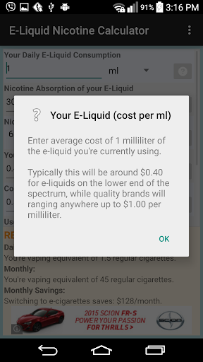 Enter average cost of 1 milliliter of the e-liquid you're currently using: