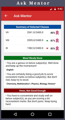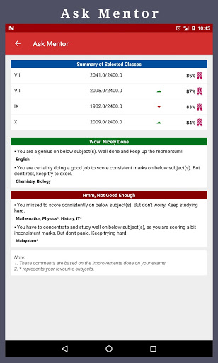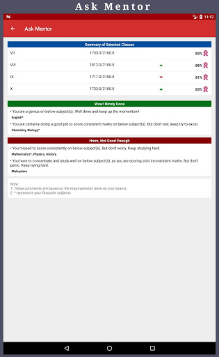 ". Ta opcja pomaga uczniom przeglądać swoje podsumowanie ich występów egzaminacyjnych. Ta inteligentna opcja pomaga uczniom wiedzieć, jak dobrze występują na egzaminach. Również ta opcja pomaga uczniom poznać swoje silne i słabe obszary i sugeruje, jak mogą one poprawić się na egzaminach.