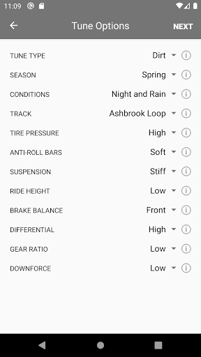 Dalsze opcje strojenia pozwalają na niestandardowe strojenie opony Ciśnienie, pręty przeciwlotnicze, sprężyny i tłumiki, wysokość jazdy, balansu hamulcowego, różnicowy, przekładnie i aero dociskać. Arbs i stawki sprężynowe są wyposażone w 3 precyzję cyfrową frakcji, ustaw wartości w grze do najbliższej wartości.