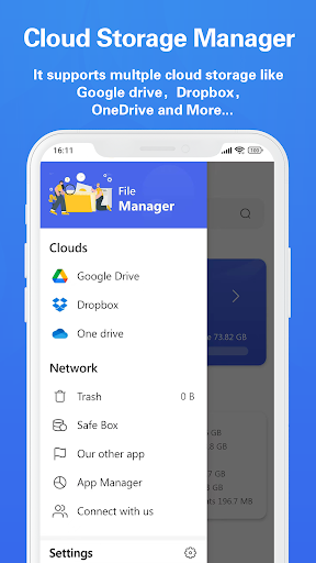 File Manager It’s free, fast and full-featured.it’s extremely easy to use. You can easily manage storages on your device, and cloud storages. What’s more, you can find how many files & apps you have on your device at a glance immediately after opening the app.