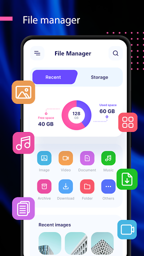 Menedżer plików jest potężnym menedżerem plików, który umożliwia obsługę dowolnego pliku na urządzeniu z Androidem , przechowywanie w chmurze lub lokalizacja sieci za pomocą czystego i intuicyjnego interfejsu. W pełni zoptymalizowany dla Androida P, Menedżer plików jest załadowany z funkcjami - Vault Security, Recycle Bin, Analyzer pamięci, Konwerter plików.