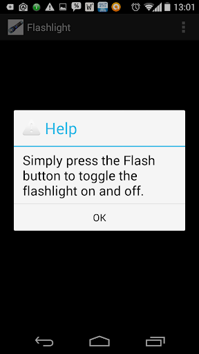 Easy to use Flashlight. Does not turn off when you change orientation. Turn off and on with just one button.