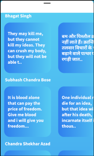 Indian Freedom Fighters is the app that is the collection of quotes by indian Freedom Fighters.