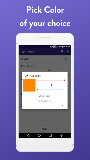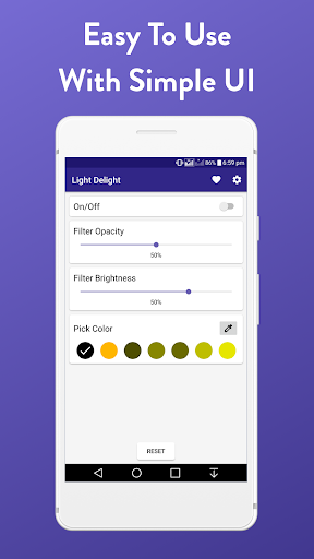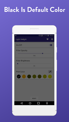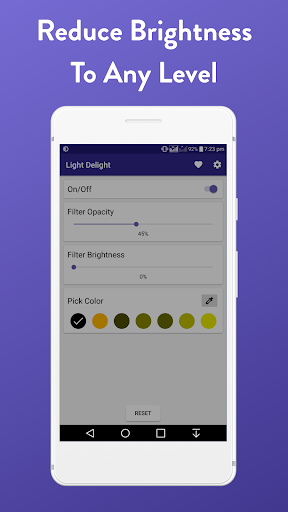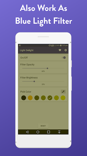 Light Delight works as Low Brightness Filter that helps you to protect your eyes from blue light.