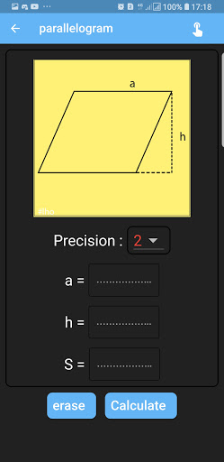 Prosty i szybki kalkulator z pięknym wzorem, idealny do codziennego i każdego. * kwadrat * prostokąt * Circle * Elipse * Prawa trójkąt * trójkąt równoważny * Każdy trójkąt * ARC * równoległobok Ciesz się <3 <3