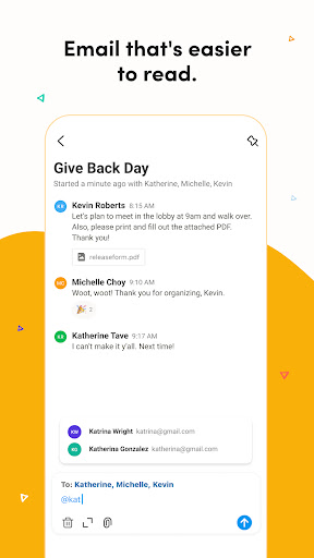 Minimalna konstrukcja ułatwia śledzenie rozmów, utrzymując e-maile wydajne i naturalne.