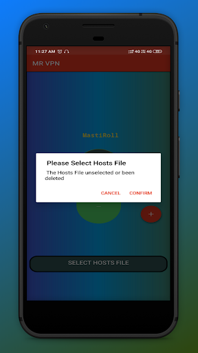 3. Open MR VPN app. click the button at the bottom of the scree , now select the hosts file which you created or downloaded from Internet.