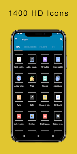 - 2. Swipe, aby uzyskać dostęp do różnych kategorii lub użyj paska wyszukiwania, aby znaleźć alternatywną ikonę, dotknij, aby zastąpić, wykonać!