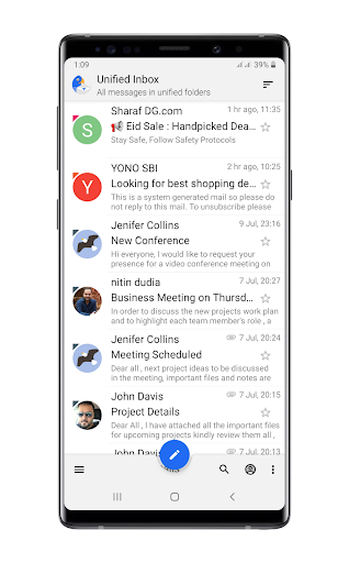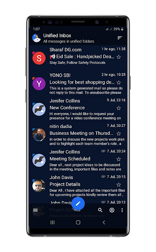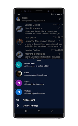• Inteligentny zunifikowany folder, aby sprawdzić wszystkie wiadomości e-mail z różnych kont w jednym miejscu