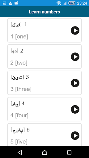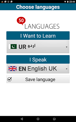 Naucz się urdu!- „Naucz się Urdu 50 języków”(www.50languages.com) zawiera 100 lekcji, które zapewniają podstawowe słownictwo.Ta bezpłatna aplikacja ma 30 lekcji.Bez wcześniejszej wiedzy nauczysz się płynnie mówić krótkie zdania w rzeczywistych sytuacjach w krótkim czasie.