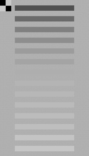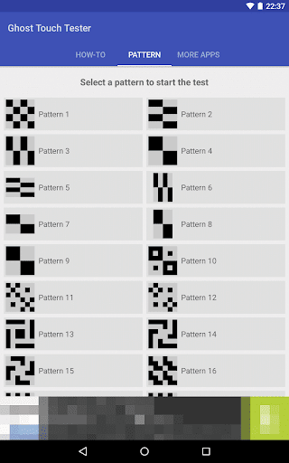3.) Rozpocznij test, wybierając wzór.Wzór jest wizualizowany w lewym górnym rogu.Nie wszystkie wzorce powodują fałszywe akcenty.Jeden wzór może powodować fałszywe akcenty w trybie krajobrazu, ale nie w trybie portretowym lub odwrotnie.