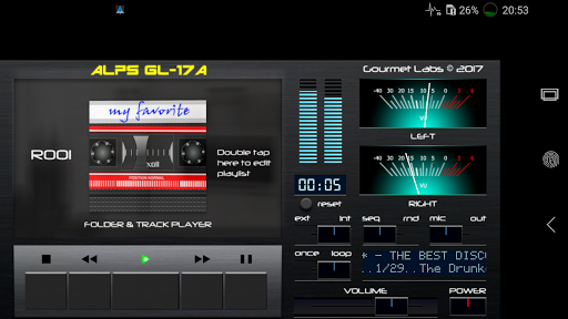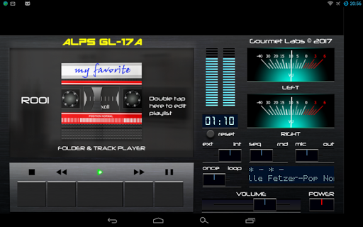 Przed użyciem przeczytaj instrukcje! Jest to odtwarzacz muzyki dla całych folderów i poszczególnych utworów. Obsługuje wszystkie formaty muzyczne obsługiwane przez Androida. Nawet może kontrolować graczy osób trzecich i pokaż na poziomie dźwięku. Interfejs symuluje główne kontrole i wskazania, w tym żywe Vu-metry. Cały wygląd i odczucia są oparte na jednym ze słynnych kasetowych pokładu z bliskiej przeszłości. Nazwa jest fikcyjna. Usuń z imienia End, aby znaleźć tę samą aplikację bez reklam.