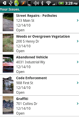 Just open the app, select your issue, and take a picture – the app knows the location and who can fix it for you!
