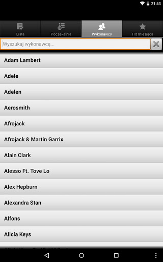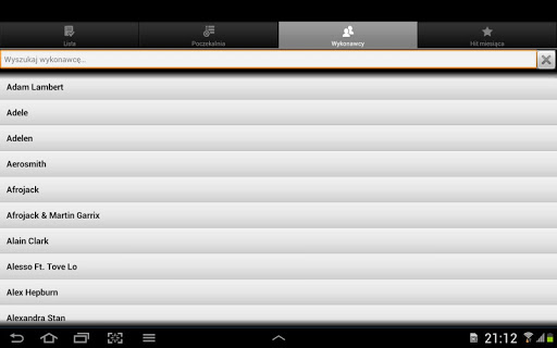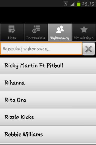 * Wykonawcy - lista wszystkich utworów, jakie kiedykolwiek były dodane do listy przebojów.